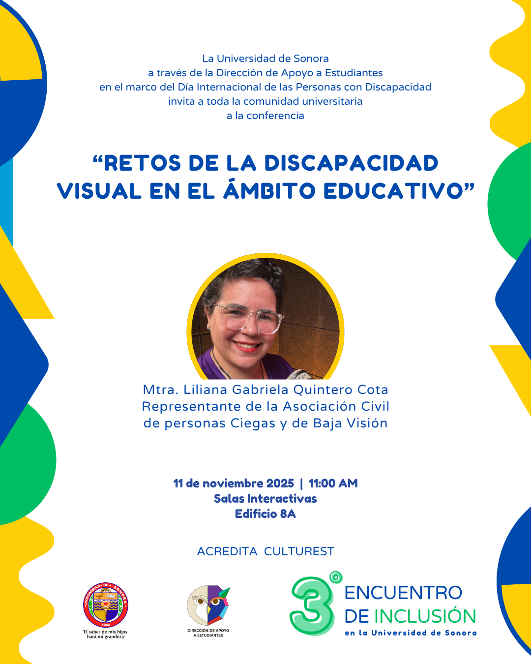 Fomentar en la comunidad universitaria el conocimiento, la empatía y las buenas prácticas para la atención e inclusión de personas con discapacidad, a través de actividades académicas y vivenciales que impulsen la construcción de entornos educativos accesibles y equitativos.