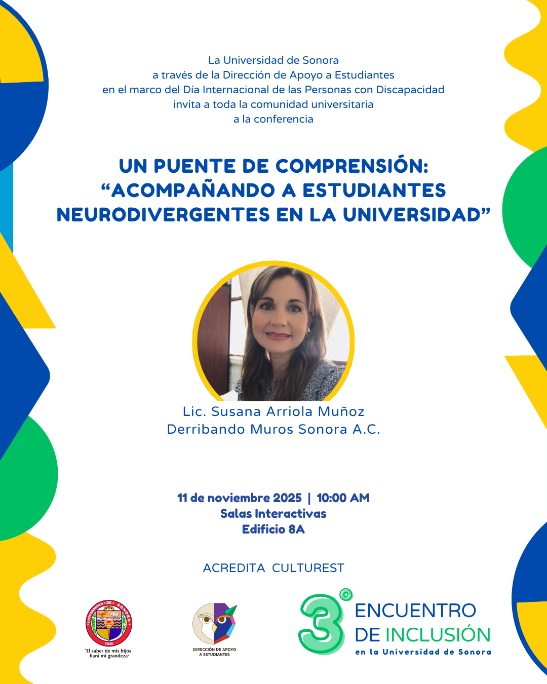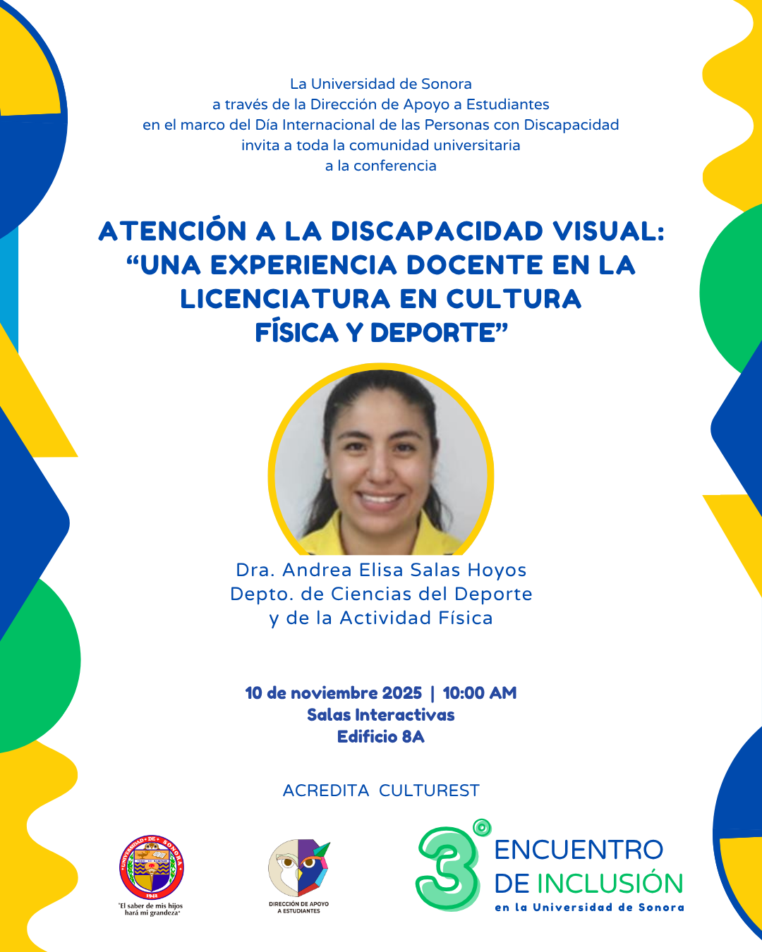 Fomentar en la comunidad universitaria el conocimiento, la empatía y las buenas prácticas para la atención e inclusión de personas con discapacidad, a través de actividades académicas y vivenciales que impulsen la construcción de entornos educativos accesibles y equitativos.